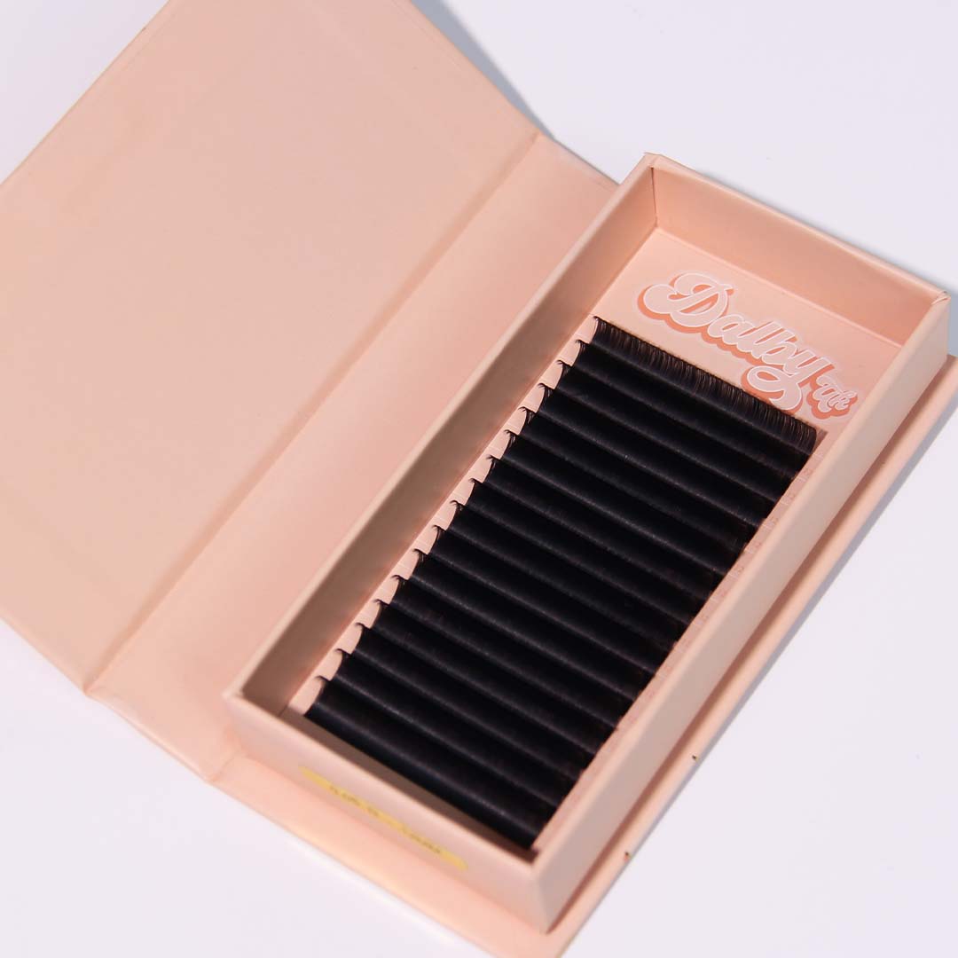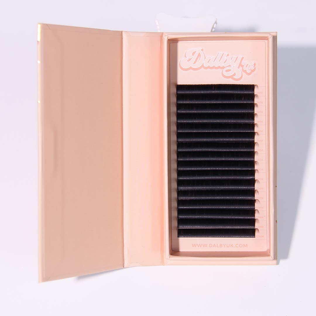 Our 0.05 range of luxury volume lashes are ultra-fine enabling the lash tech to put many lashes together to create beautiful fans with small pointy bases.