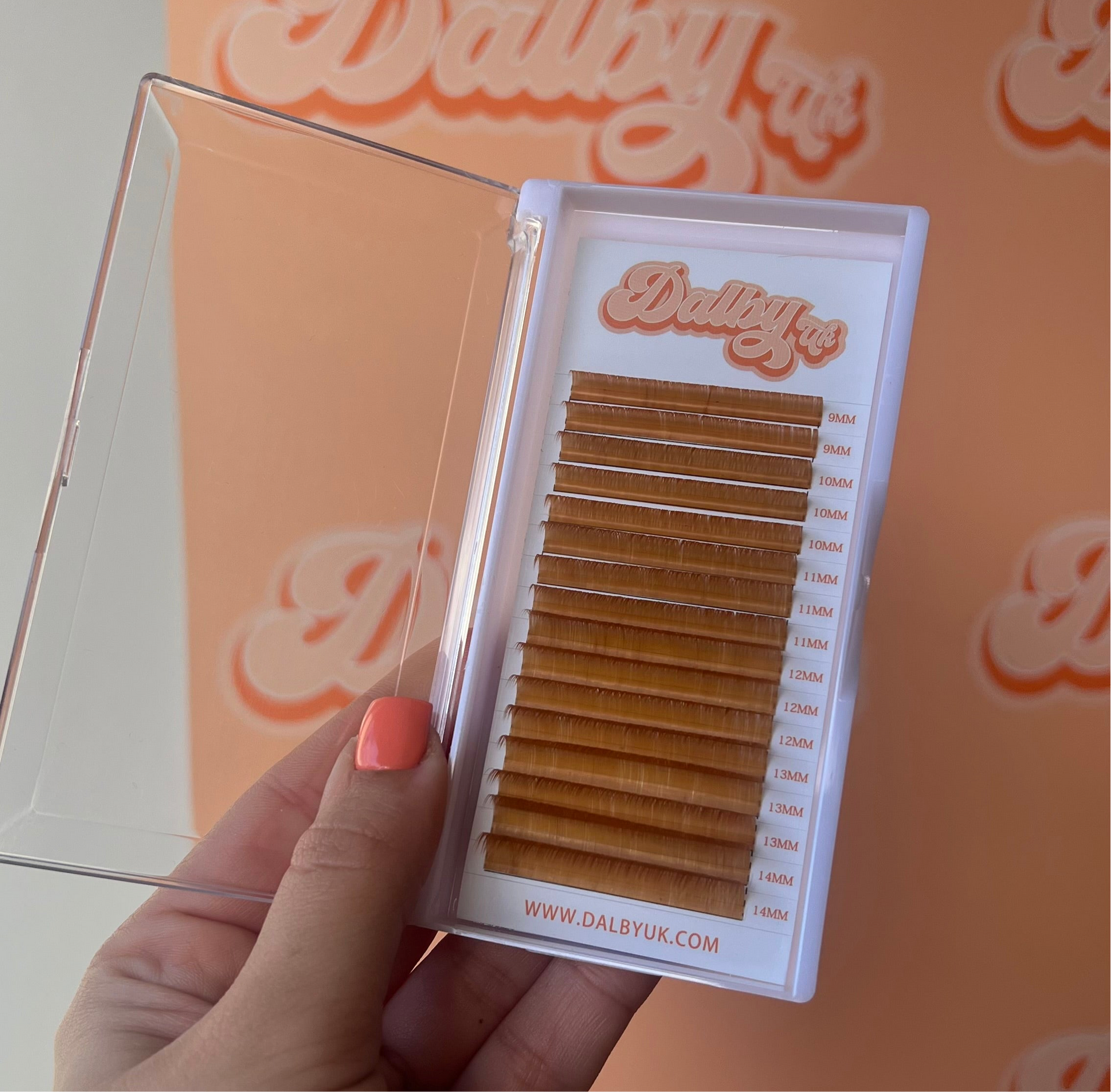 Our 0.05 light brown trays of luxury volume lashes are ultra-fine enabling the lash tech to put many lashes together to create beautiful fans with small pointy bases.